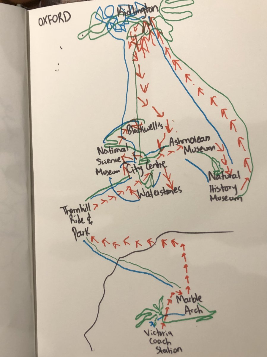 After visiting two more museums (less relevant to my project) and seeing most of the city, we decided to take a random bus to its last stop, and explore the area we end up in. This was a fun experience. We ended up in Kidlington, a small, quiet, suburban area. I asked a local if there was anteing to do or to see, and she looked confused and said there is nothing much. After a while of aimless wandering we took another bus back to Oxford. Although seemingly unproductive, we got to know each other more, shared stories and had a talk about our projects. It was almost a meditative break.